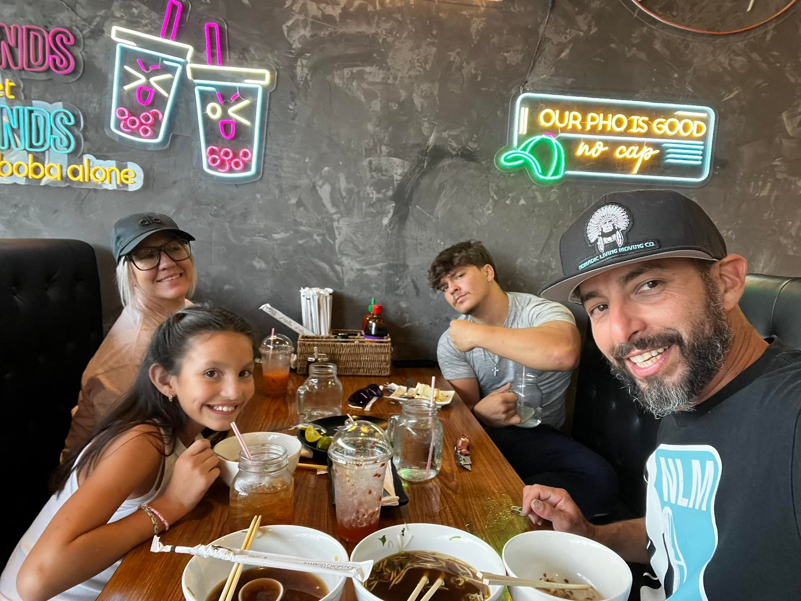 Arrive a little after noon. Menu looks very well designed. Foods came out quickly. Casual and clean environment. Pho is great. Broth is full bodied and flavorful. Garlic noodles are delish. Will come back for more.